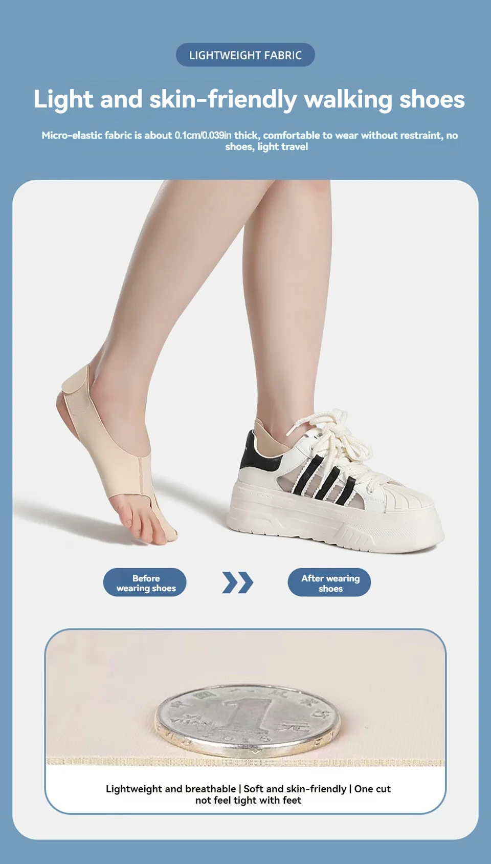 - Ultra-Thin Fabric – Warp-knitted elastic material is soft, breathable, and discreet under socks or shoes